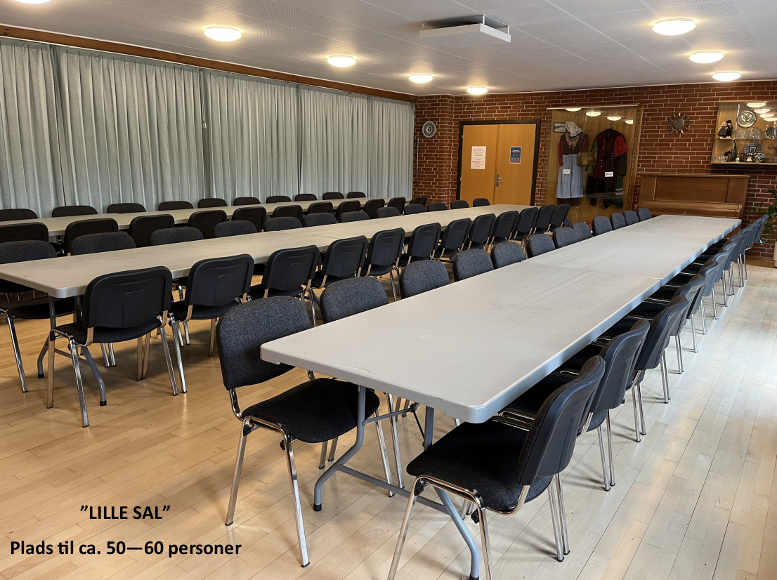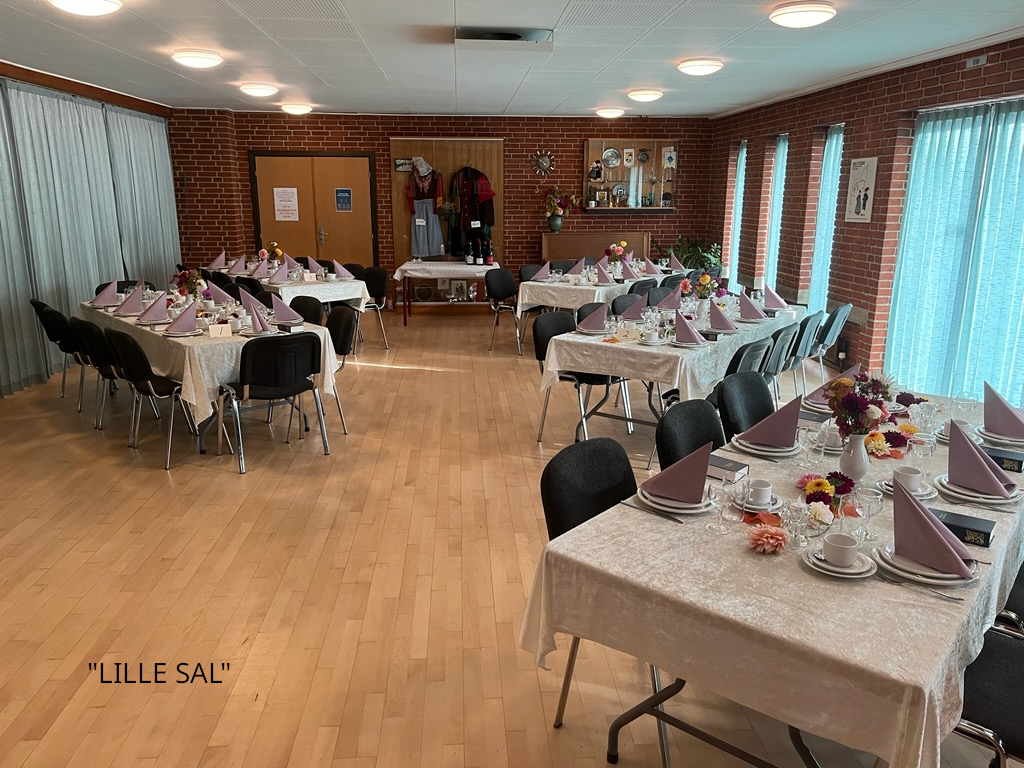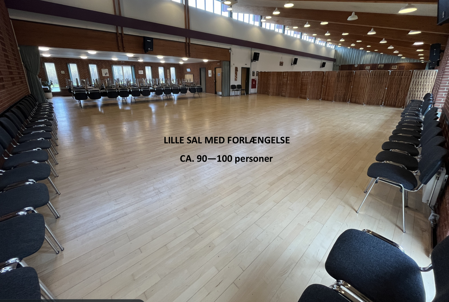 • ”Lille sal med forlængelse”- op til 90 - 100 personer.
