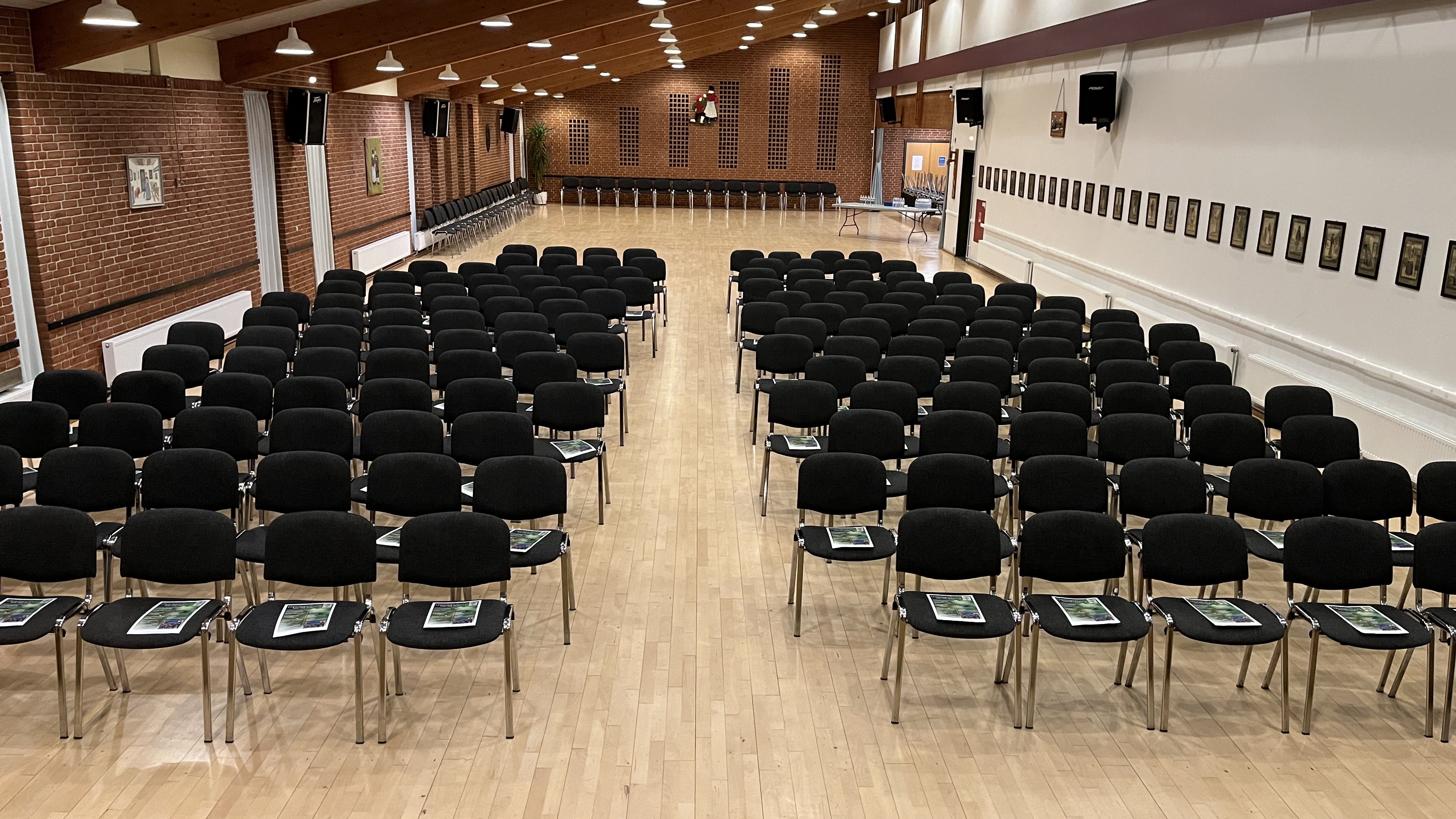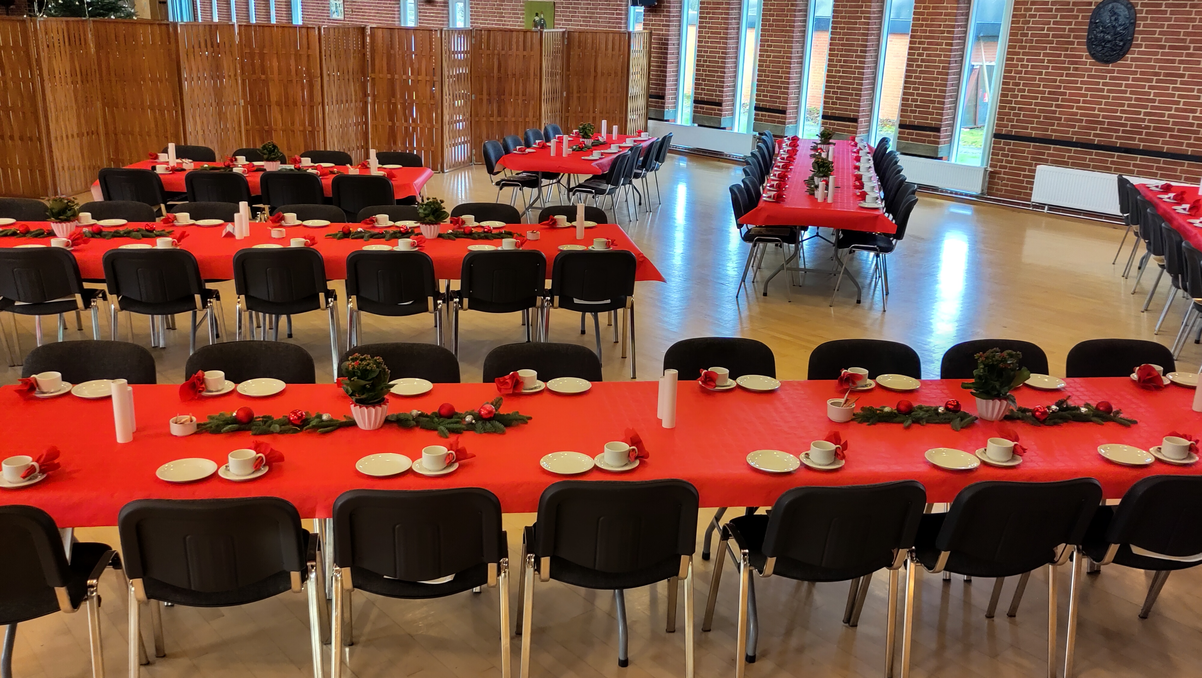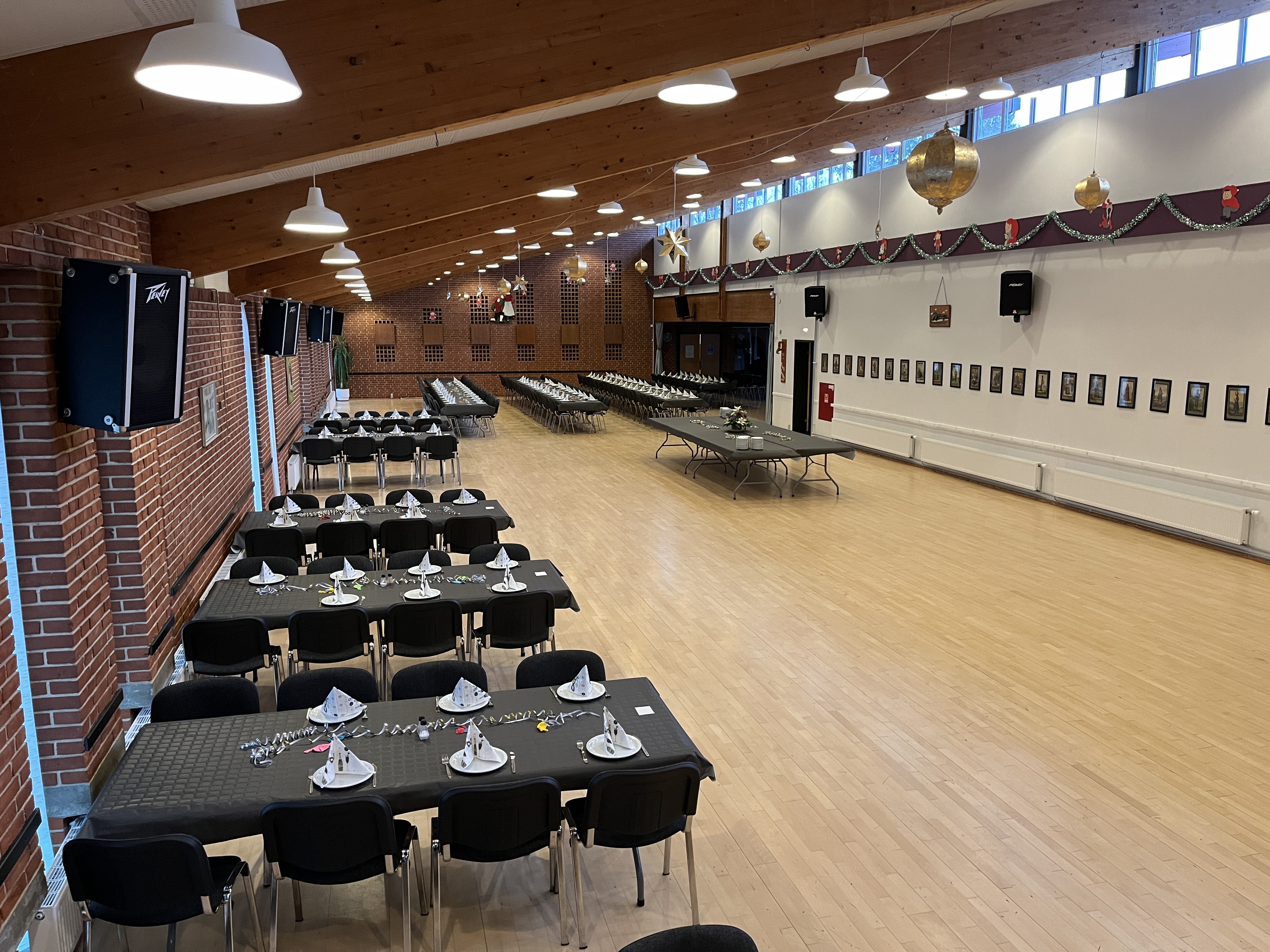 • ”Lille sal med forlængelse”- op til 90 - 100 personer.